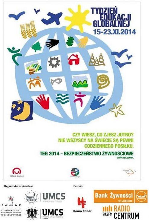 Tegoroczna, 16. edycja Tygodnia Edukacji Globalnej odbędzie się w Polsce w dniach 15-23 listopada 2014 roku pod hasłem "Czy wiesz, co zjesz jutro? Nie wszyscy na świecie są pewni codziennego posiłku. TEG 2014 - BEZPIECZEŃSTWO ŻYWNOŚCIOWE".