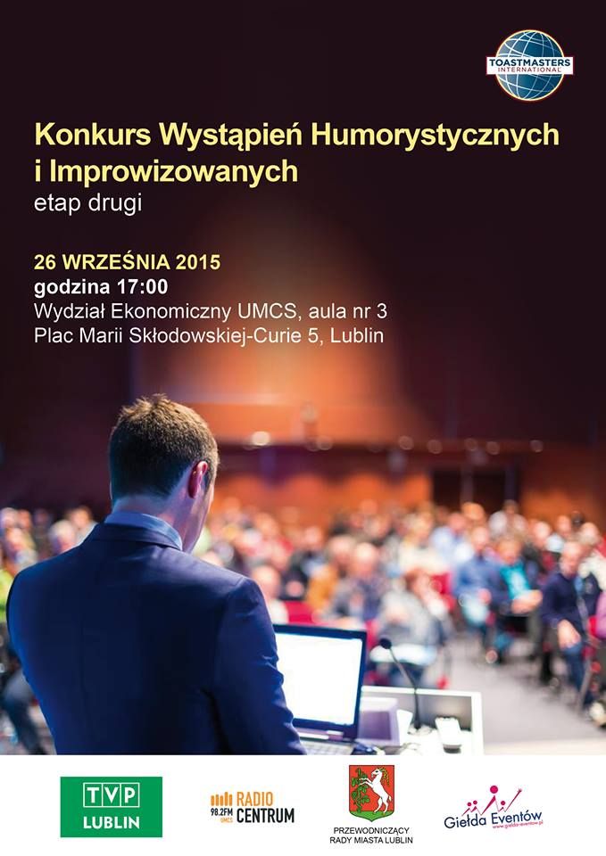 26 września (poniedziałek) o godzinie 17:00 w auli numer 3 na Wydziale Ekonomicznym Uniwersytetu Marie Curie Skłodowskiej w Lublinie odbędzie się Konkurs Wystąpień Humorystycznych i Improwizowanych.