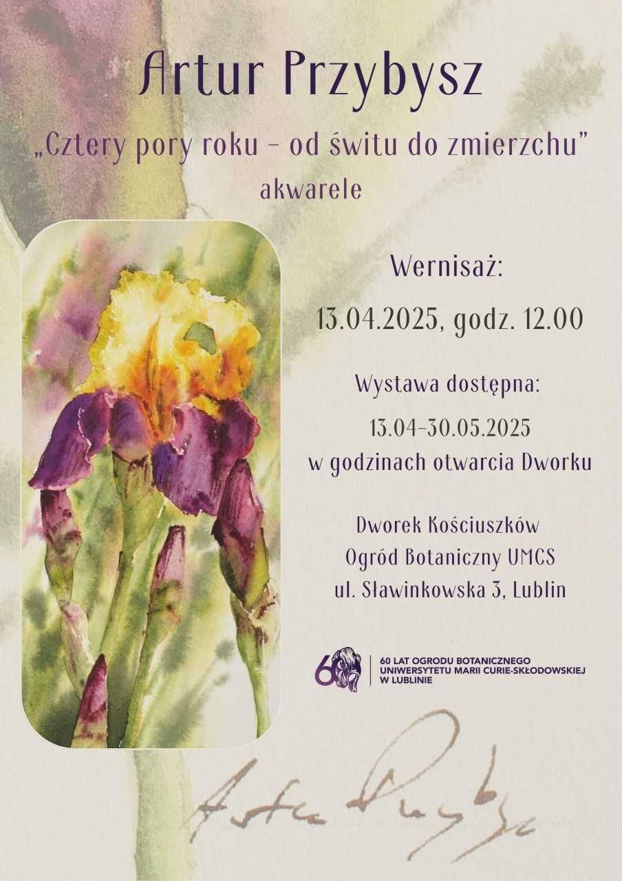 Wystawa malarstwa akwarelowego Artura Przybysza „Cztery pory roku – od świtu do zmierzchu” będzie czynna do 30 maja w Dworku Kościuszków w Ogrodzie Botanicznym UMCS.