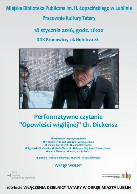 18 stycznia 2016, godz. 16.00 - dla mieszkańców dzielnicy Tatary, DDK Bronowice, ul. Hutnicza 28.