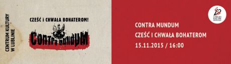Lubelski Salon Artystyczny zaprasza na koncert zespołu CONTRA MUNDUM CZEŚĆ I CHWAŁA BOHATEROM, 15 listopada 2015, godz. 16:00 Sala Widowiskowa Centrum Kultury w Lublinie, wstęp wolny, bezpłatne wejściówki dostępne w kasie CK.