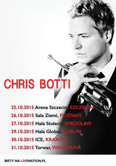 Chris Botti - zdobywca prestiżowej nagrody Grammy powraca do Polski już tej jesieni. Jak podkreśla w wywiadach: „Polska publiczność jest najlepsza na świecie” - Amerykański trębacz smooth jazzowy zagra serię koncertów w naszym kraju. 29 października 2015, Hala Globus, Lublin