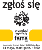 Zapraszamy wszystkich chętnych do wzięcia udziału w Przeglądzie Regionalnym FAMA 2009 w Lublinie. Celem eliminacji jest wyłonienie artystów, którzy wezmą udział w finale festiwalu FAMA (Świnoujście, 17-30.08.2009).